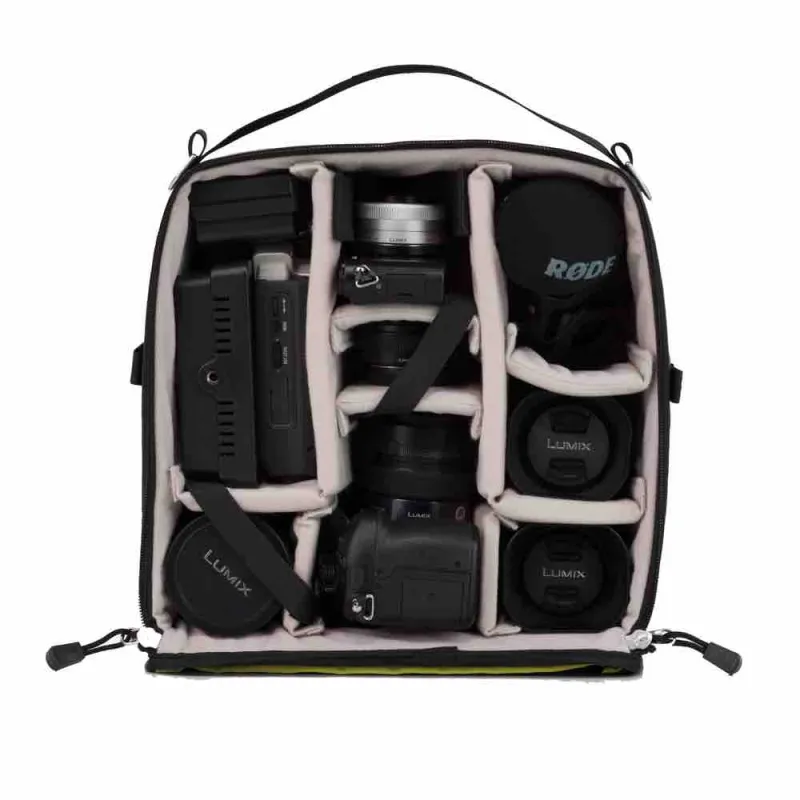 Capacity 28 litres Exclusive DuraDiamond® fabric Strong zips with easy grip pulls Comfortable carrying with internal aluminium frame and adjustable suspension system Includes F stop Shallow Medium insert.