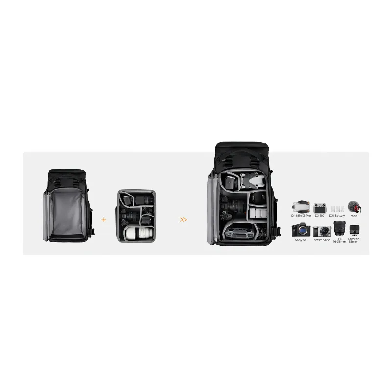 - Removable photography insert with 8 configurable compartments