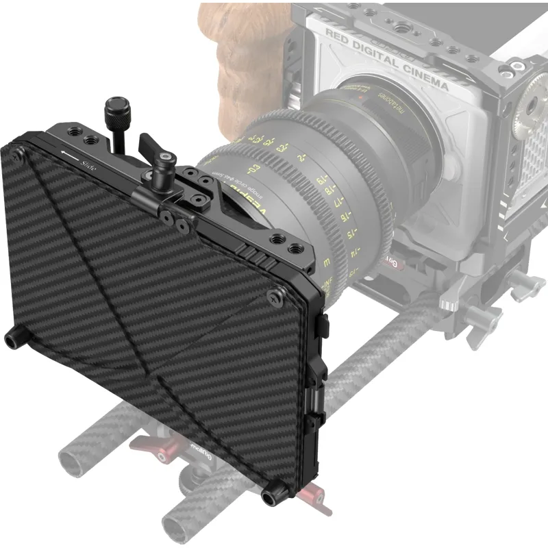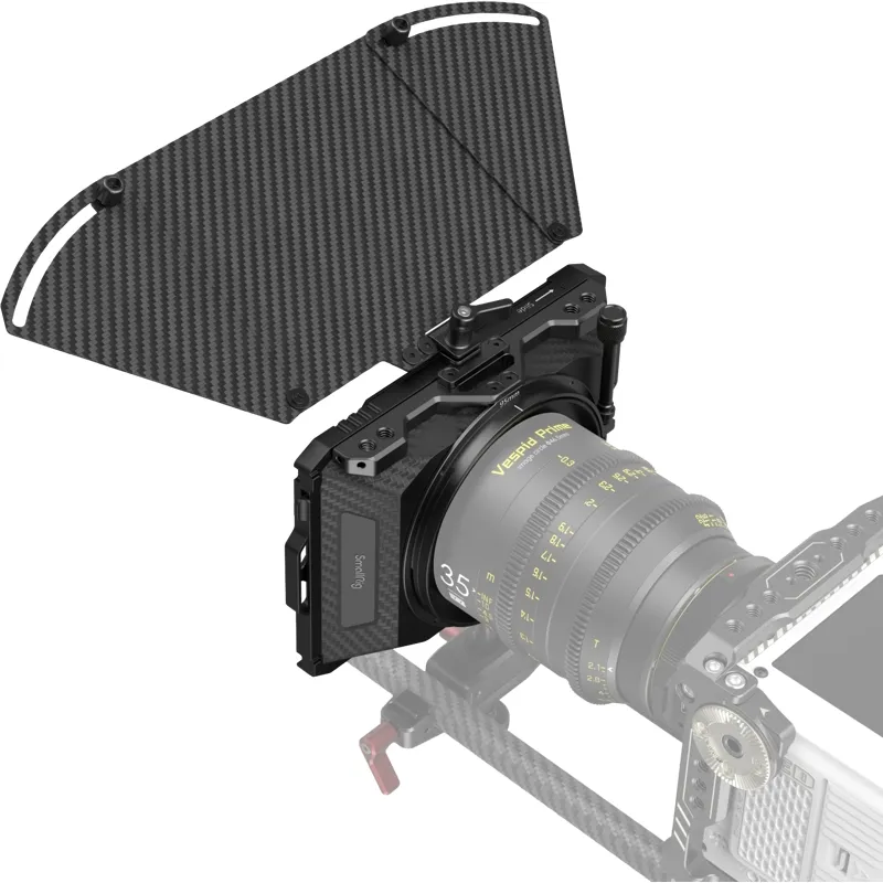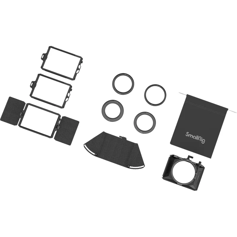 SmallRig Mini Matte Box Pro 3680 is designed for mirrorless cameras to prevent sunlight or other light from causing glare and flare and to control images on the screen. It comes standard with two 4 x 5.65" filter trays, which can be quickly mounted via slots, and supports multiple plug-in filters at the same time. The top flag opens 180° and its side wings extend 40° for additional light blocking; the side flag is attached to either the matte box or the filter tray via slots and opens 180° to block stray light. The matte box is suitable for various adapter rings (Φ52-95mm, Φ55-95mm, Φ58-95mm, Φ62-95mm, 58-95mm, Φ62-95mm, Φ67-95mm, Φ72-95mm, Φ77-95mm, Φ82-95mm, Φ86-95mm) as well as Φ95mm lenses. Its adapter rings allow quick release of circular filters (including CPL and ND) of up to Φ92.5mm. To secure lens and prevent shaking, a separately available 15mm LWS Rod Support (ID: 2663) is recommended. This product also comes with a storage bag for quick storage of the matte box and filter trays.