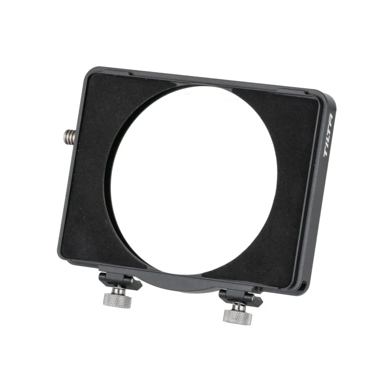 Combine multiple 95mm circular filters to achieve a unique aesthetic with a set of the Tilta Stackable Circle Filter Tray for Mirage Matte Box, meant to attach to your Mirage Matte Box. It replaces the standard rubber hood of the matte box, though it also allows the hood to be secured to the front of the tray.