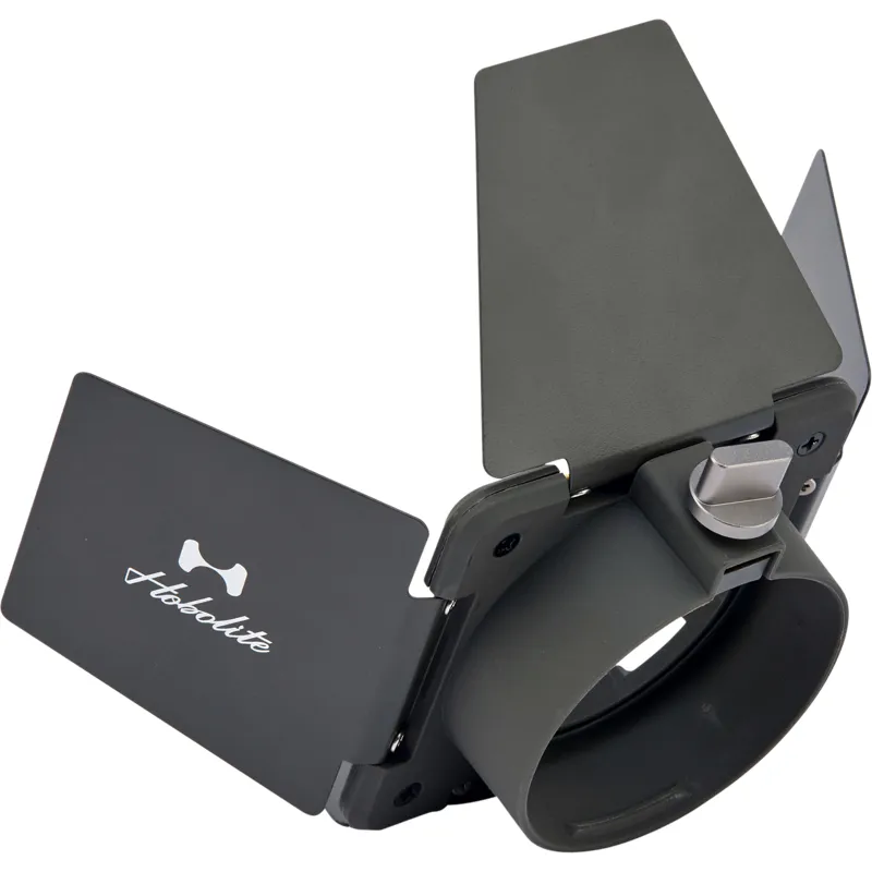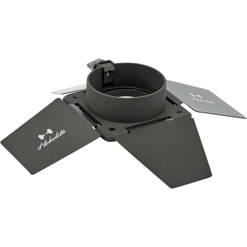 The Diffuser Dome and Color Filter Gels magnetically mount to the interior ring of the Barndoor, while the Honey Comb attaches over the lens with a pressure mount.
