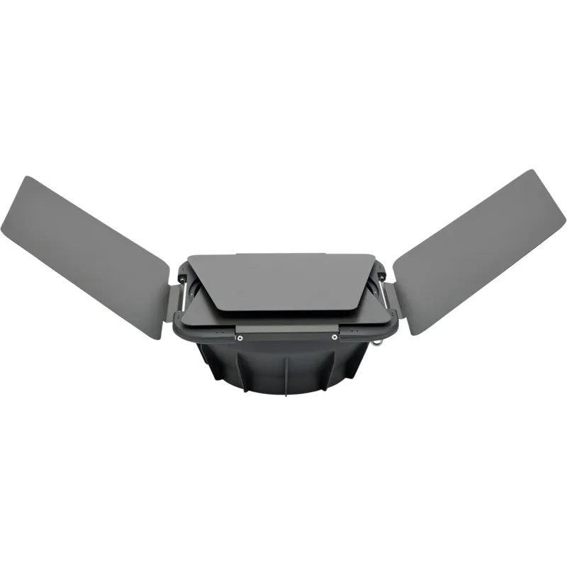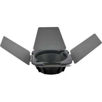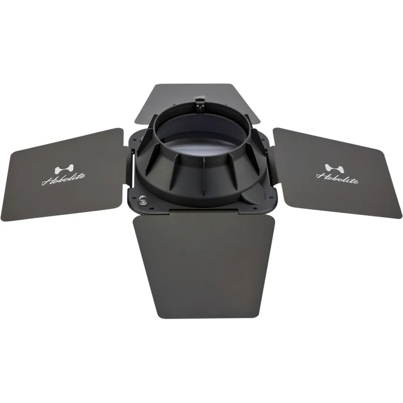 The Pro Barndoor includes a safety latch and a Honey Comb filter that attaches over the lens with a pressure mount. The four adjustable doors can be opened or closed to control the amount of light spread from the fixture.