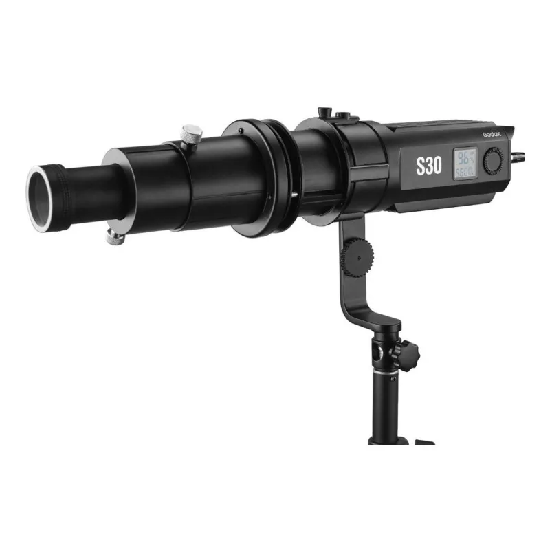 The Godox Projection SA-P1 Projection Attachment is designed for the Godox S30 Focusing LED Light. This empty holder is suitable for the optionally available 60, 85 and 150mm projection lenses from Godox.