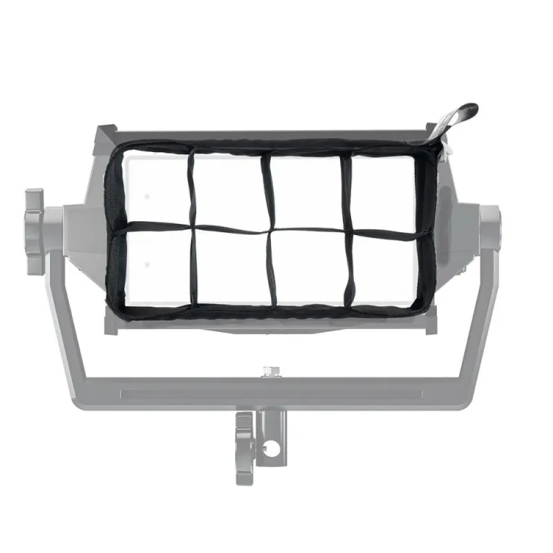 The Litepanels Astra IP Half Snapgrid Eggcrate directs light output and reduces spill, featuring a snap-open design for quick setup.