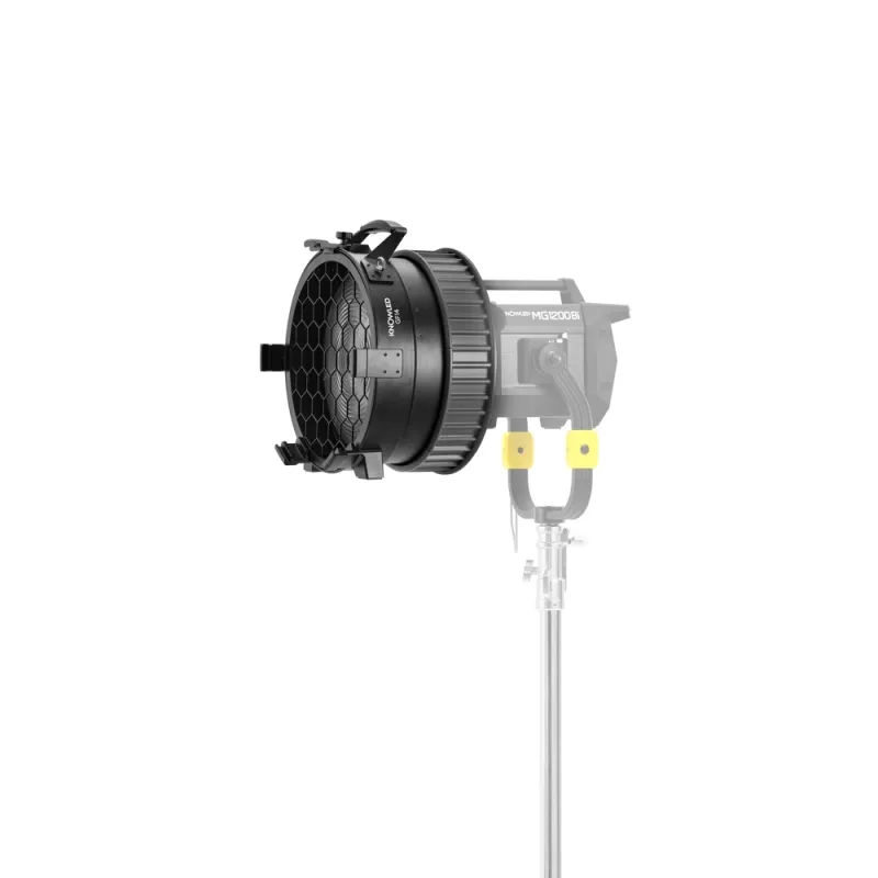 The Godox GF14 Fresnel lens (G mount) with a diameter of 14 inches is specially designed for use with the Godox Knowled MG1200Bi Bi-Color LED lamp. This lens increases light output without compromising on light quality, providing consistent and even light.