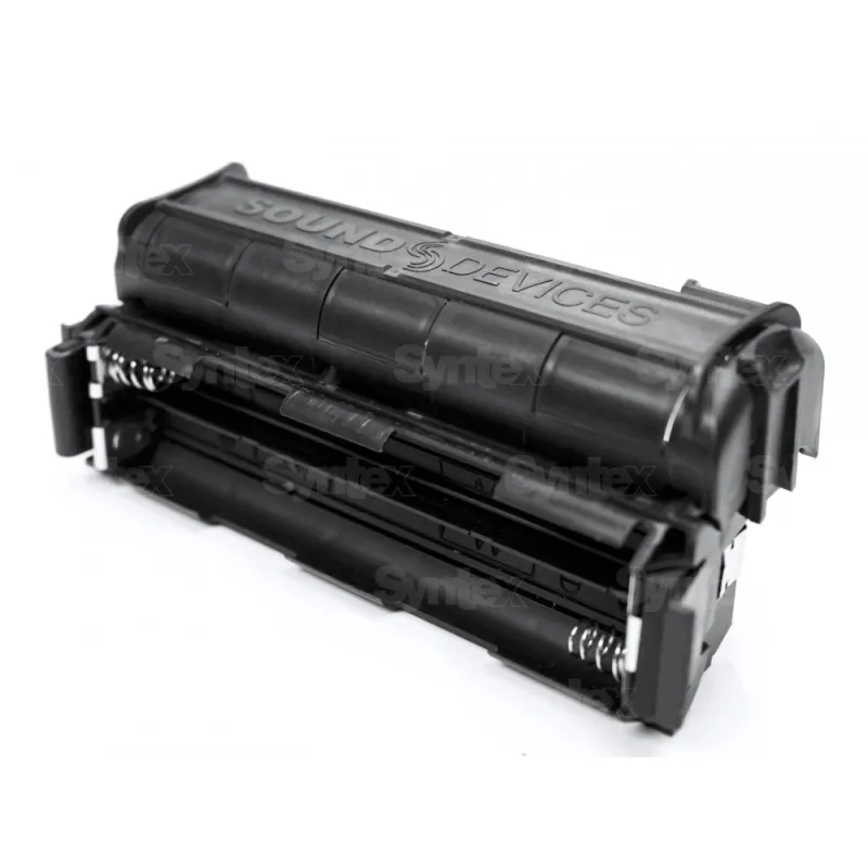 This is an optional battery sled for the Sound Devices MixPre-3 and MixPre-6 audio recorders. The sled holds eight AA batteries, and it is recommended to use rechargeable NiMH batteries.