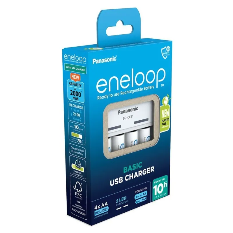 USB Charger Panasonic ENELOOP K-KJ61MCD40USB, 10hour + 4xAA Battery 2000mAh