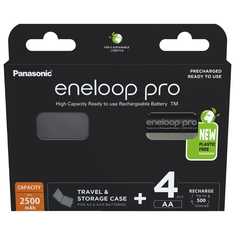 New improved HCDE series New eco-friendly packaging for storing rechargeable batteries - the highest capacity among the new generation of 2500 mAh rechargeable batteries - retains 85% of energy after 12 months after charging! - works at low temperatures down to -20°C. C! - charged in the production process with solar energy Powerful AA / AAA battery holder included Made in Japan