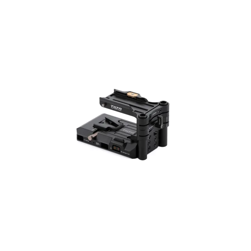 This Smart V-Mount Battery Baseplate connects to camera cages via an ARCA connection and is specifically designed for our Canon R5C Camera Cage.