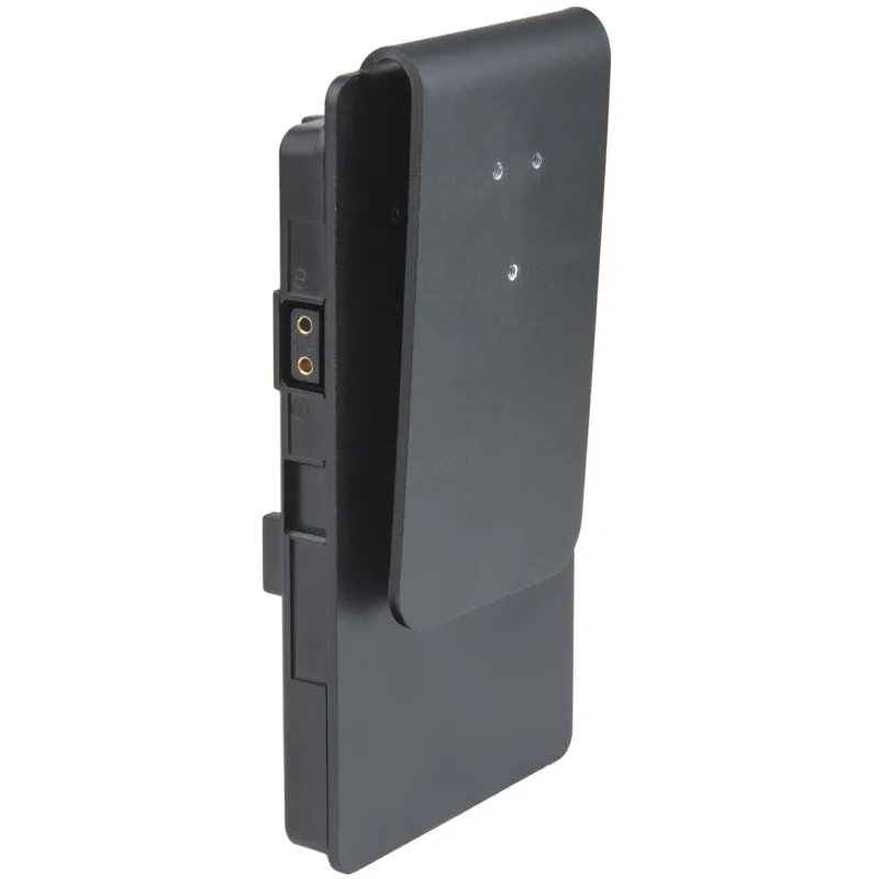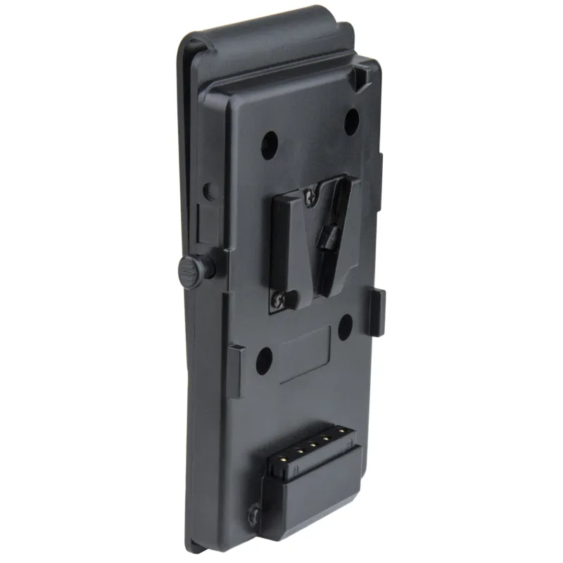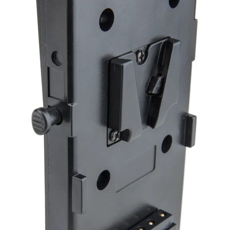 Made of aluminum with a black powder coating finish, the U-shape adapter allows for easy insertion into the slot underneath the table. It features a V-mount plate equipped on the U-shape adapter, which allows for a firm battery mount when AC power is not available.