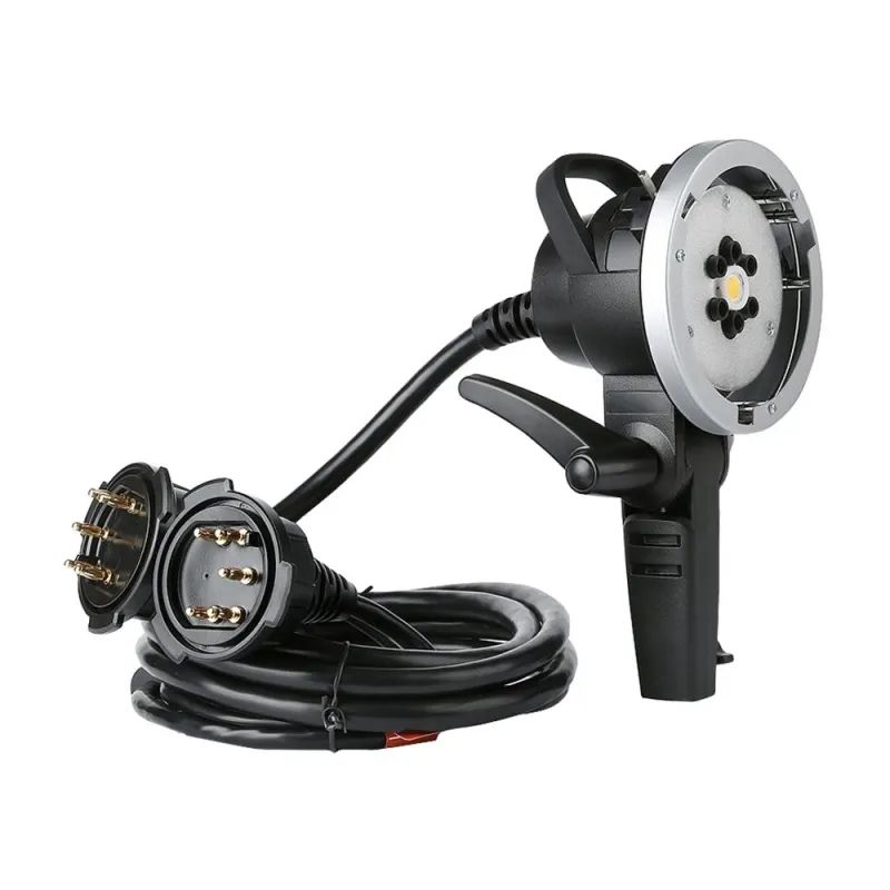 The compact and light AD-H1200B is powered by the batteries of the flash units and has a cable with a length of 2.75 meters. Thanks to the Bowens mount, using accessories such as an optional softbox or reflector is very easy. This 1200ws head is easy to tilt and has a spigot connection at the bottom for placement on a lamp tripod.
