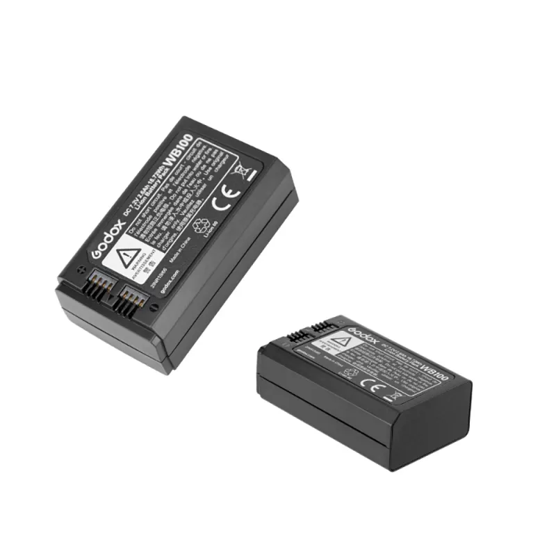 The Godox WB100 battery is a spare or replacement for the AD100Pro. The 7.2V / 2600 mAh Lithium-ion battery is removable and rechargeable.