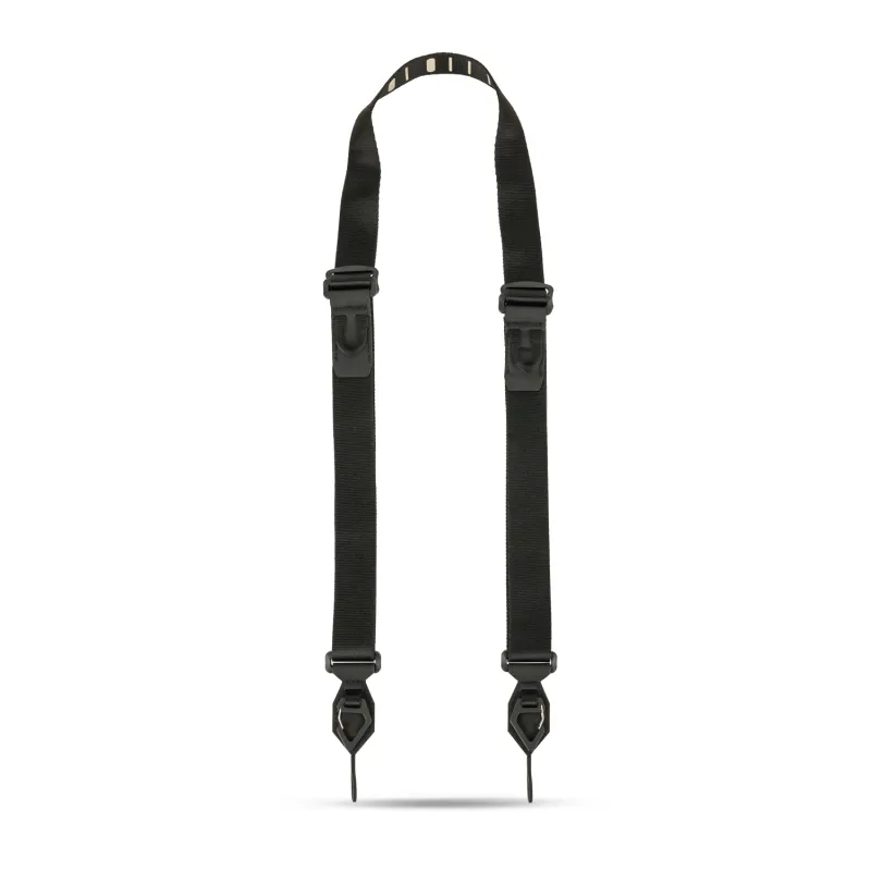 Universal camera attachment system Custom WANDRD aluminum clips Hypalon attachment loops Rated up to 100 lbs. Easily adjustable system that fits any body size Neck carry Shoulder carry Sling Carry Non slip custom silicone print Carry everything from a point and shoot to a Pro DSLR Built in tool with flat head Customized double quick adjustment system Lifetime warranty