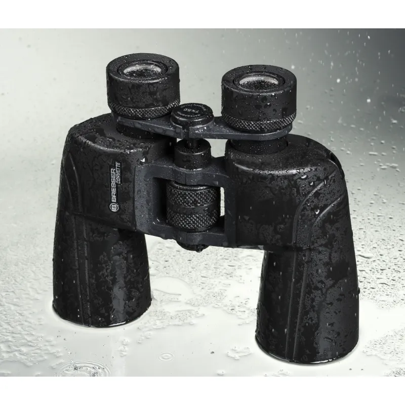 The BRESSER Corvette models impress with their outstanding and razor-sharp image reproduction. The sophisticated and precise mechanism completes these binoculars optimally. This series is made with high quality BaK-4 glass material, which is coated with a contrast and brightness enhancing full multi-layer coating . A diopter adjustment and a tripod connection thread are available as standard. The large LE (Long Eye) eyepieces offer optimal conditions not only for spectacle wearers due to the raised eye point and the TwistUp eyecups . Thanks to the waterproof housing even a heavy rain shower does not bother these binoculars.
