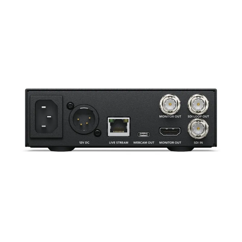 Blackmagic Web Presenter includes a 12G-SDI input with support for all HD and Ultra HD formats up to 2160p60. A 12G-SDI loop output is included enabling customers to loop video through more than one web presenter, so customers can stream to multiple services. Blackmagic Web Presenter features Teranex conversion technology on the SDI input for incredibly clean looking video. Blackmagic Web Presenter takes the incoming HD or Ultra HD input signal and automatically converts it to high quality, low data rate 1080p HD, which is sent to the hardware H.264 encoder for streaming and to the computer when using the USB webcam outputs.