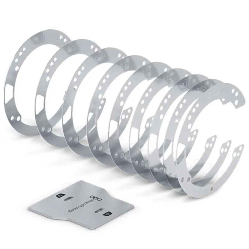 Set of shims and baffle tool for making precise changes to the flange focal distance for URSA Cines EF, PL, or LPL mount.