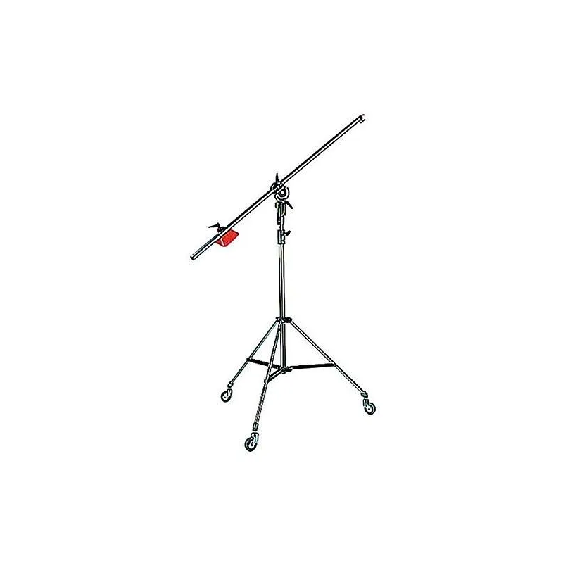 This stand has a black painted, steel construction, with wheels and a locking counterweight. The stand section supports light fixture loads up to 30 kg, to a maximum height of 2.1 m. The boom supports loads of up to 6.8 kg fully extended.