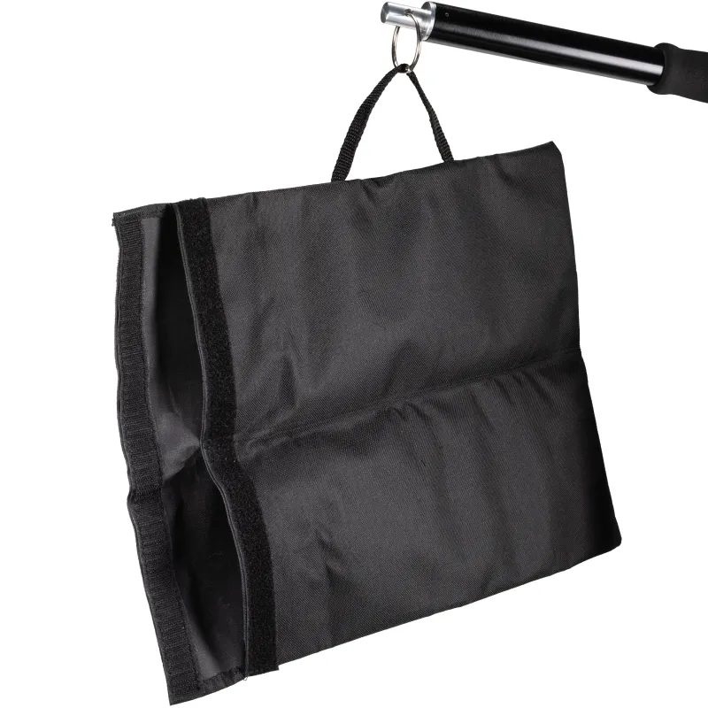 This multifunctional extension arm is guaranteed to do a good job in the photostudio and video production , because despite the sturdy construction with a tube diameter of 2,5 cm and 2,8 cm it is a real lightweight with only 1160 g . In addition, the powder-coated aluminium for less relfection is easy to handle. You can ensure the right balance for heavy weight lamps with the supplied conterweight bag . Simply fill the two cpompartments of the bag and with the the practical strap, yu can quickly attach the conterweight to the boom arm.
