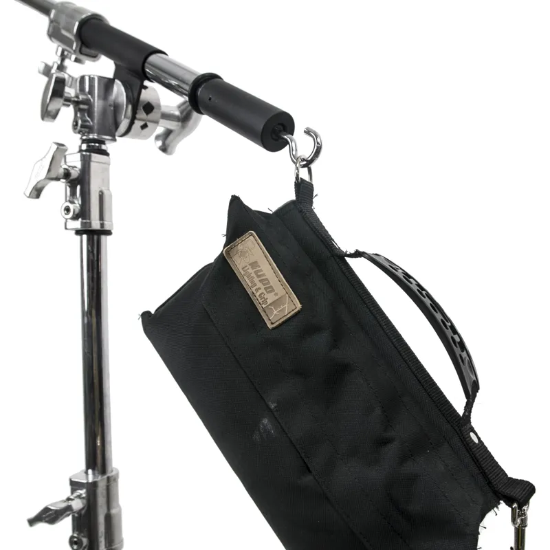 This all-metal steel construction boom features an ear that is designed to fit between the plates of a grip head. It comes equipped with a built-in hook at the tail end for adding sandbags for counterweight.