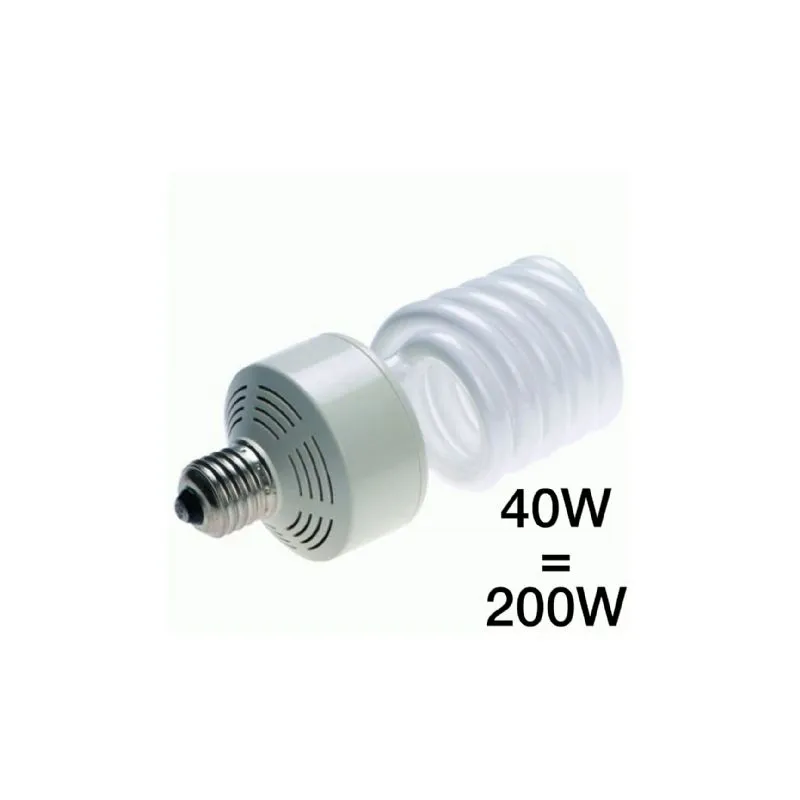 ;The output of this Daylight Spiral Lamp can be multiplied by factor 5 while comparing with a normal light bulb. The output of these 40W spiral lamp is comparable to a 200W light bulb. Please note that there are different qualities and price ranges for these lamps available. Therefore it s wise to compare the light output (measured in LUX) from each lamp and/or brand. The output from this spiral lamp is stated in the specifications below.