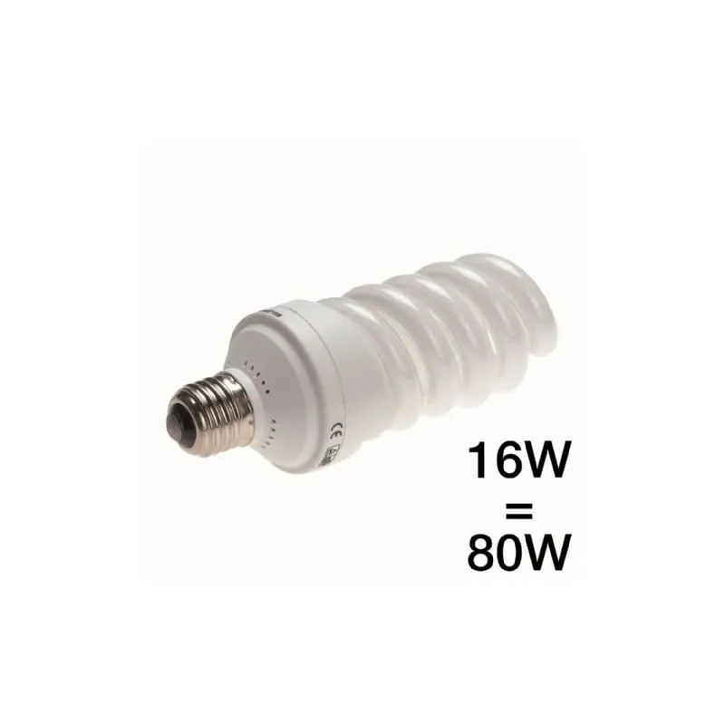 ;The output of this Daylight Spiral Lamp can be multiplied by factor 5 while comparing with a normal light bulb. The output of these 16W spiral lamp is comparable to a 80W light bulb. Please note that there are different qualities and price ranges for these lamps available. Therefore it s wise to compare the light output (measured in LUX) from each lamp and/or brand. The output from this spiral lamp is stated in the specifications below.