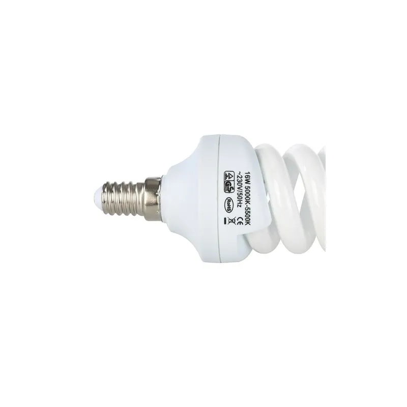 The Falcon Eyes ML-16 16W Daylight Lamp is equipped with an E14 socket. Further, the ML-16 spiral daylight lamp provides a stable color temperature of 5500K.