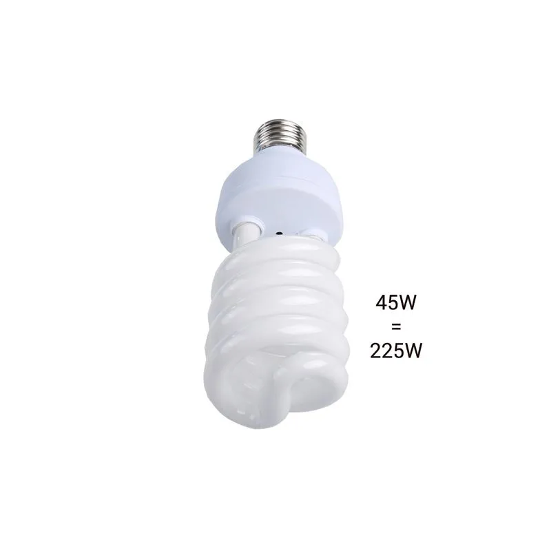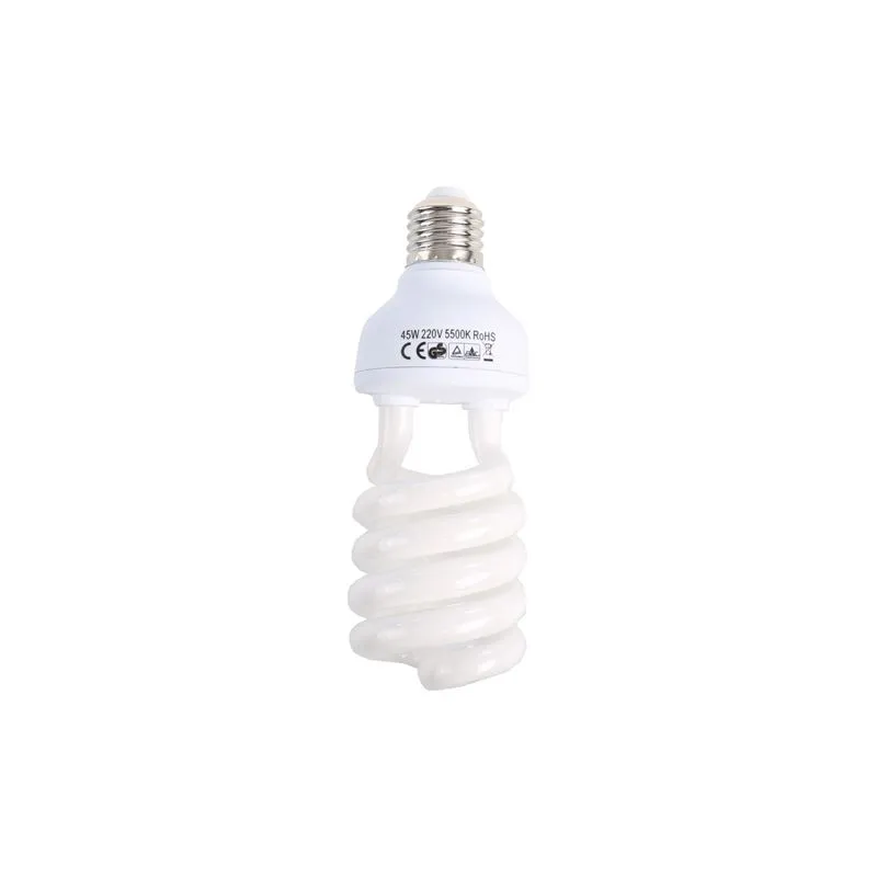 The StudioKing 45W Daylight Lamp is equipped with an E27 socket, the PL-L45 spiral daylight lamp provides a stable color temperature of 5500K.