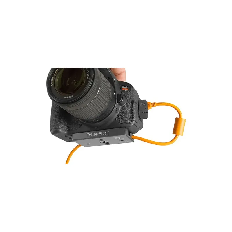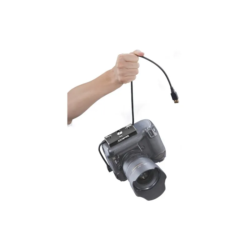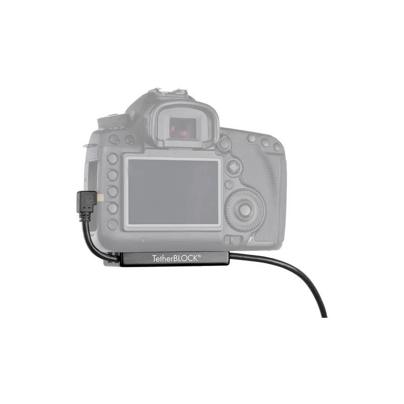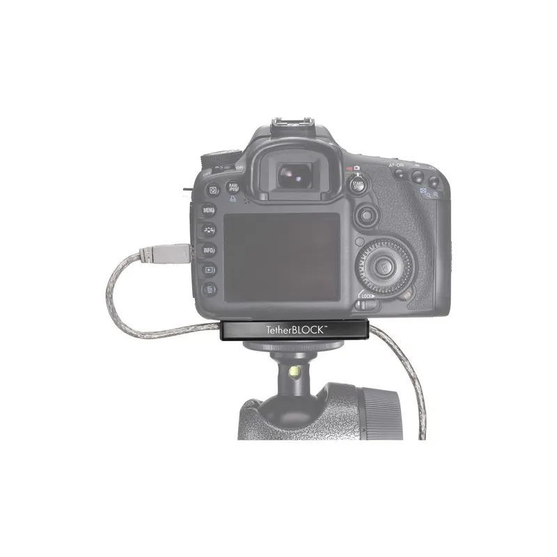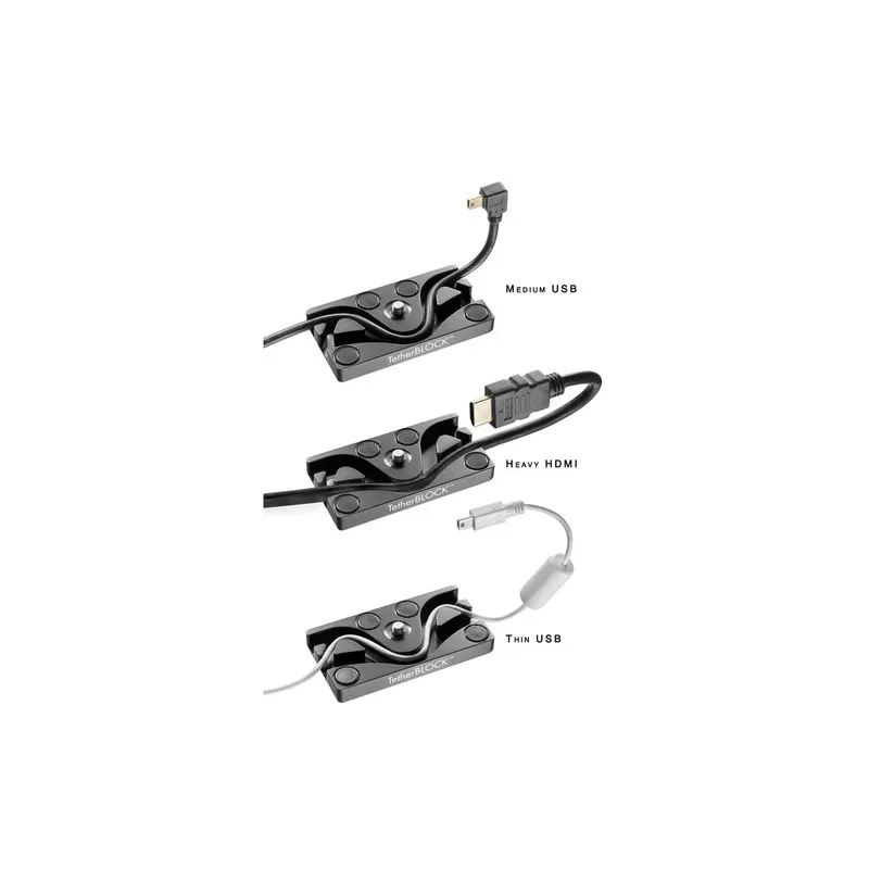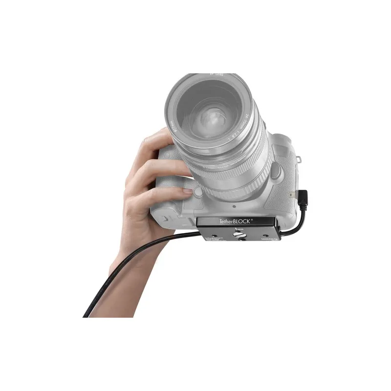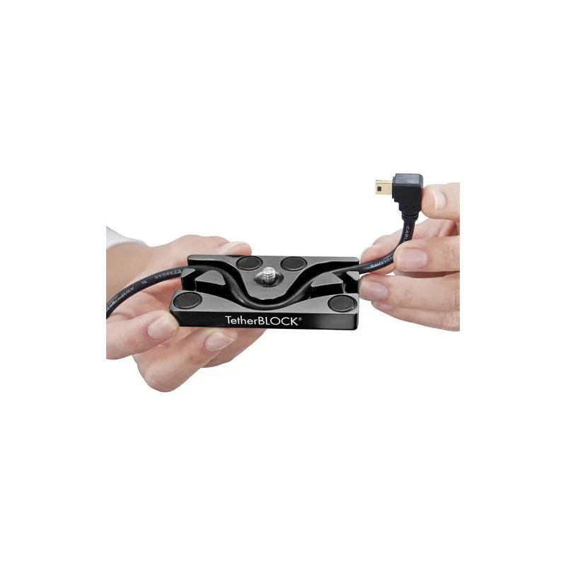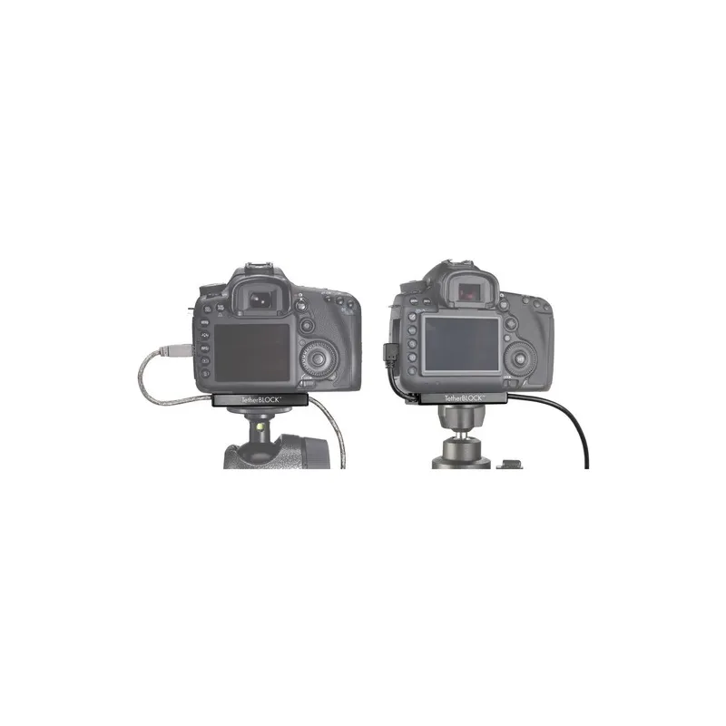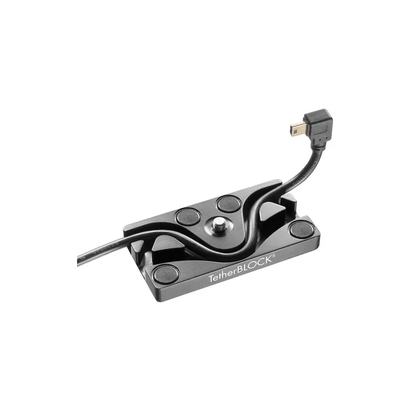 The MC Multi Cable Mounting Plate from TetherBLOCK is designed to prevent accidental removal of a cable from your camera's data ports, thereby preventing damage to the port and to your camera. By snaking a USB, FireWire, or HDMI cable through the TetherBLOCK's S-channel and attaching the TetherBLOCK to your camera's tripod mount, you'll be able to shoot tethered to a computer without fear that a trip over the cable will damage the camera's sensitive data ports.