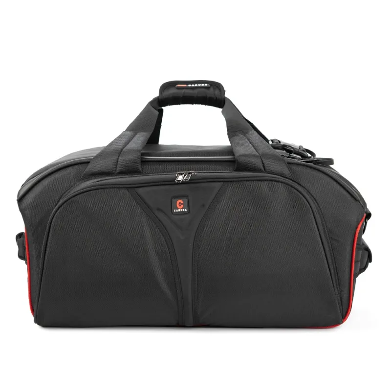The Caruba Velvex VLX-2 is a sturdy bag with enough storage space and a detachable shoulder strap. In addition to the double handle on top, two sturdy handles are attached to the side of the bags. The front pocket can be opened with the zip and it is divided in a big compartment with three small pockets and two mesh pockets for accessories. The main compartment can be opened and closed with the double zip and Velcro closure. Only YKK-zips from high quality are being used and they are waterproof. The main compartment is divided in three sections, but has small pockets on the side for cables or a small laptop. The dividers can be adjusted to your own wishes. Your equipment is easy to find in the bag thanks to the red lining.