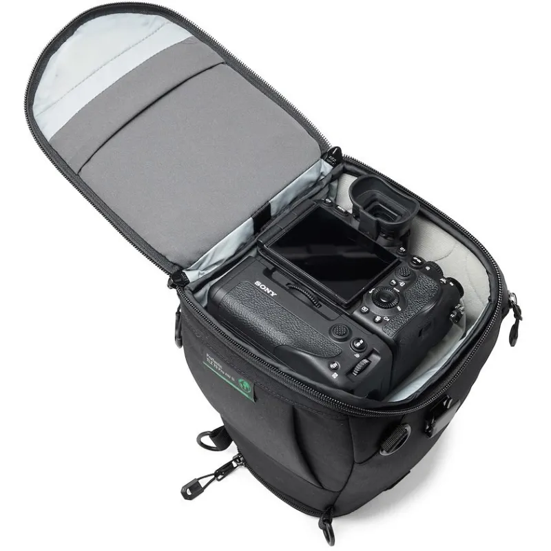 This toploader is ideal for photographers working outdoors, featuring an expansion section for lens hoods and a side-opening door for easy access. The quick-close buckle and interior divider enhance usability, allowing for quick camera removal or a two-lens setup.