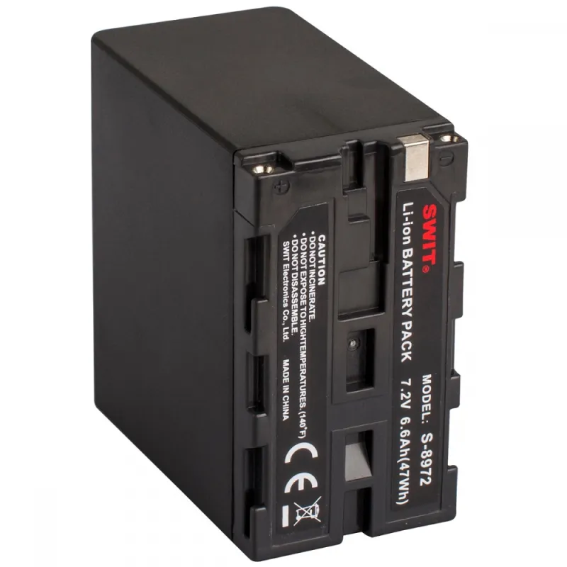 S-8972 is the replacement battery for SONY NP-F970, compatible with SONY HVR-V1/Z1/Z7, DSR-PD190, HD1000E, etc. S-8972 can exchange digital info with the cameras, and display remaining power info on the camera viewfinder.