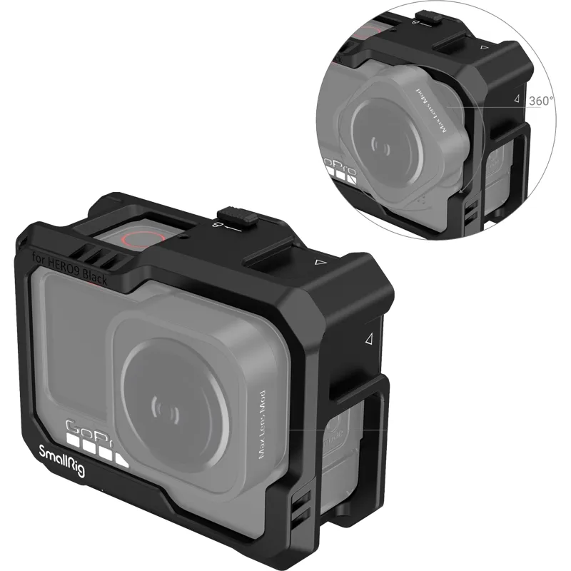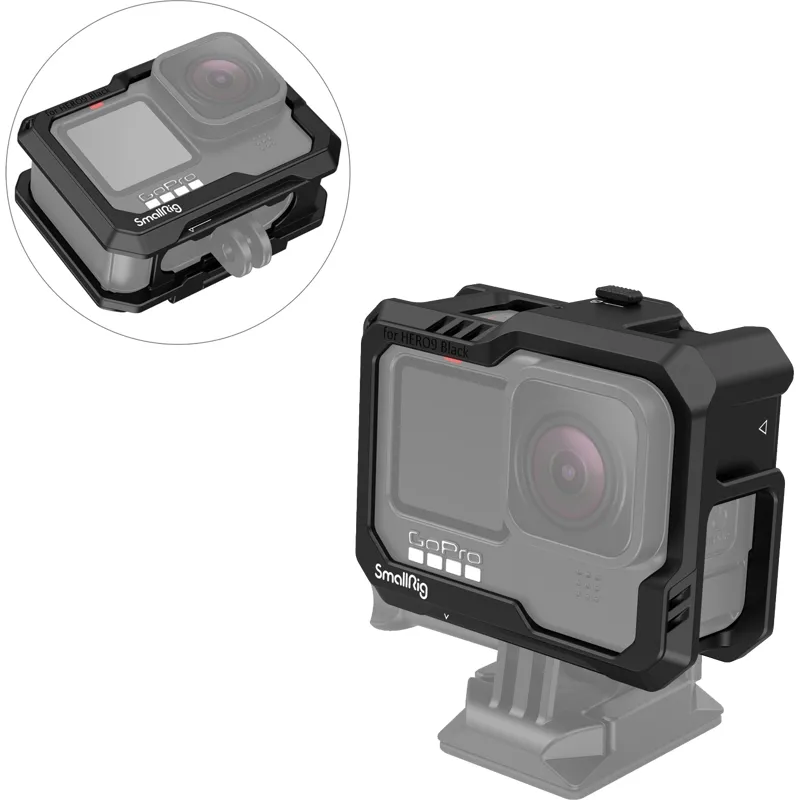 All in one full cage The SmallRig Cage Kit for GoPro Hero 12 / 11 / 10 / 9 Black 3083C is a complete cage. It comes with two cold shoe mounts compatible with GoPro Light Mod and regular microphone, LED video light, and offers a perfect solution for vlog filming. The bottom mount supports the original GoPro 7 / 8 microphone adapter; and the included side plate is interchangeable with the original plate to allow audio recording while charging.