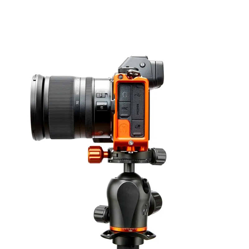 The Arca-Swiss compatible L-Bracket has been shaped with cut-outs to allow users to easily access and tilt the camera’s rear screen, and provide easy access to the lens release button on the front of the unit.