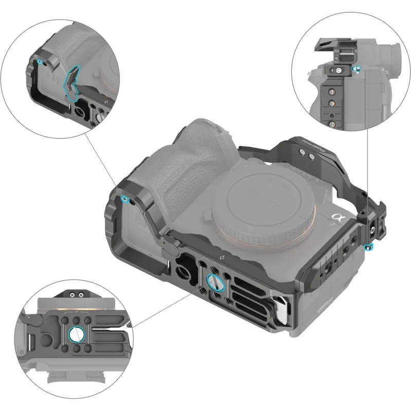 Camera cage redesigned The SmallRig 4538 HawkLock Quick Release Cage Kit for Sony Alpha 7R V/Alpha 7 IV / Alpha 7S IIIis designed to enable low angle shooting and protect the camera, while providing a wide range of attachment points for accessories.