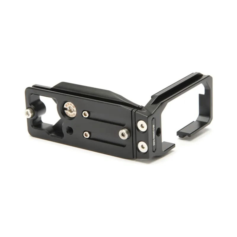 ALFIE is a standard 38mm Arca Swiss compatible L bracket and is made from aerospace grade magnesium alloy. This L bracket gives users access to the battery door and side ports on all cameras. The cut out in the vertical aspect allows rear screens to be opened either upright or tilted, and Alfie also has two 1/4 20 threads for attachment of accessories.