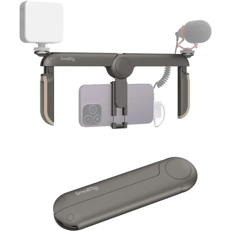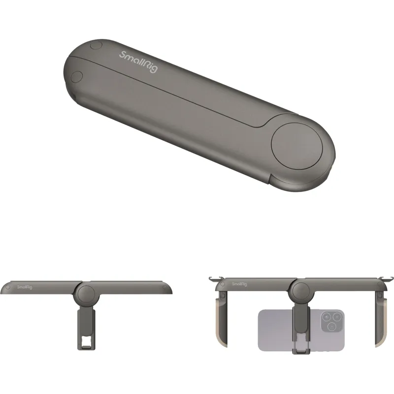 SmallRig P20 Universal Foldable Mobile Phone Cage 4047 is beautifully crafted, which can be used for dual-handed photography and folded to just 18cm long to be daily carried around. Looking like a pebble, the cage feels smooth and comfortable. As for its cross arm, there is a foldable cold shoe mount on each end for a microphone and LED video light; and a 1/4”-20 threaded hole at the center for accessories like a tripod. Its grip handles, which can be stored in the cross arm, feature silicone edges for a more comfortable grip; and like the cold shoe mounts, can be mechanically locked to increase solidity and durability. This item supports 65-80mm wide mobile phones (with cases) in horizontal and vertical shooting.
