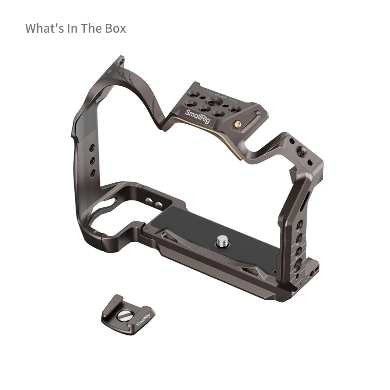 Equipped with a detachable cold shoe mount featuring an anti-twist locating pin, the mount can be attached to the 1/4"-20 locating holes on both the sides and top of the cage, allowing for the mounting of accessories such as microphones and video lights. The cage also features: