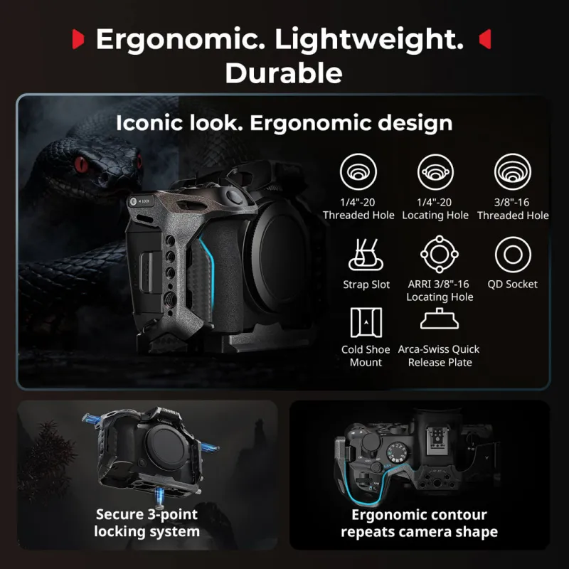 Built to protect your Canon EOS R6 Mark III, R6 Mark II, or R5 Mark II while expanding accessory support, the SmallRig advanced camera cage kit helps guard against bumps and scratches during use. A secure three-point locking system fastens the camera using a one quarter twenty screw along with dual side locating points to prevent twisting.