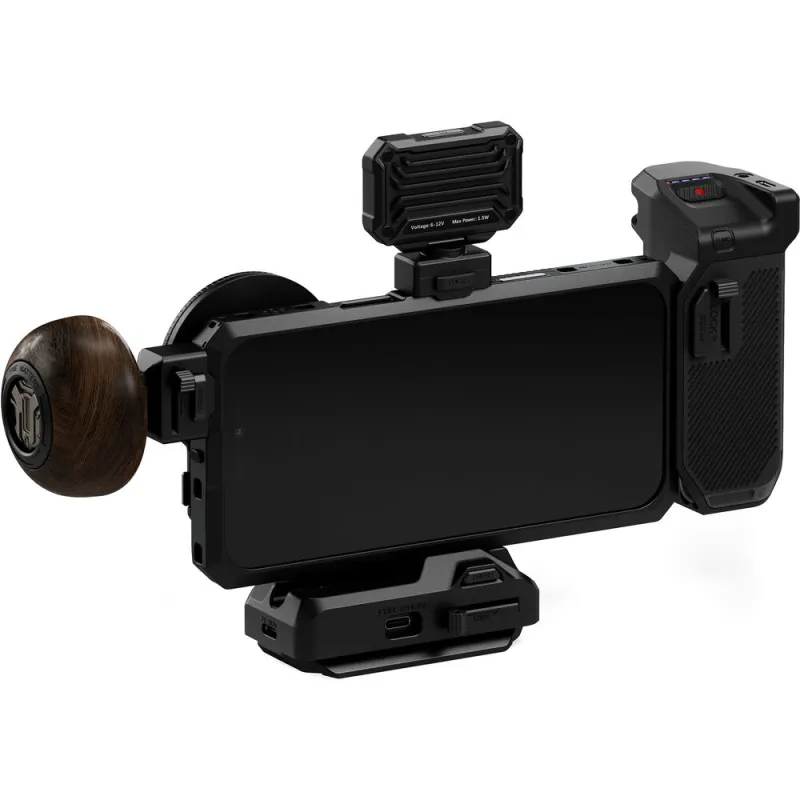 The Khronos iPhone 17 Pro Max Ultimate Kit from Tilta includes the Focus PD Handle for iPhone, iPhone 17 Pro Max Case, a daylight-balanced LED panel with three brightness levels, a Khronos Cooling System, a circular wood handle, a Quick Release USB-C Hub, and a combination Polarizer/Black Mist 1/2 filter. This bundle helps ensure you're better equipped for professional videography, live streaming, vlogging, and more.