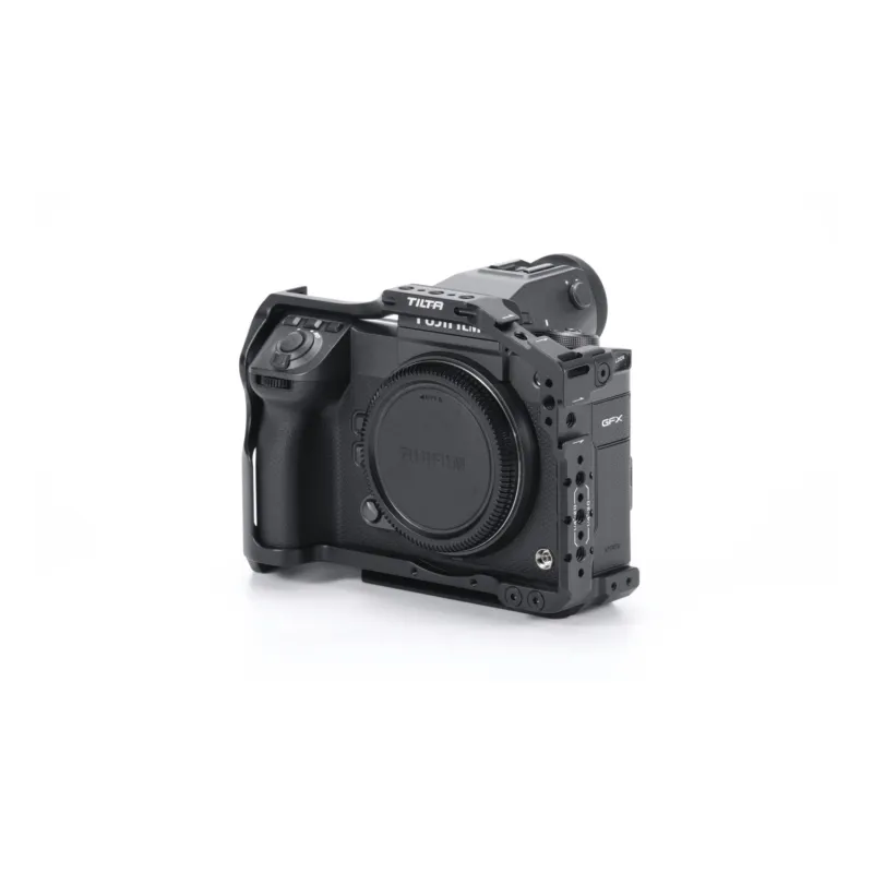 This cage is compatible with the camera body of Fujifilm GFX 100 II with or without the EVF and is also compatible with the original Fujifilm Battery Handle Grip.