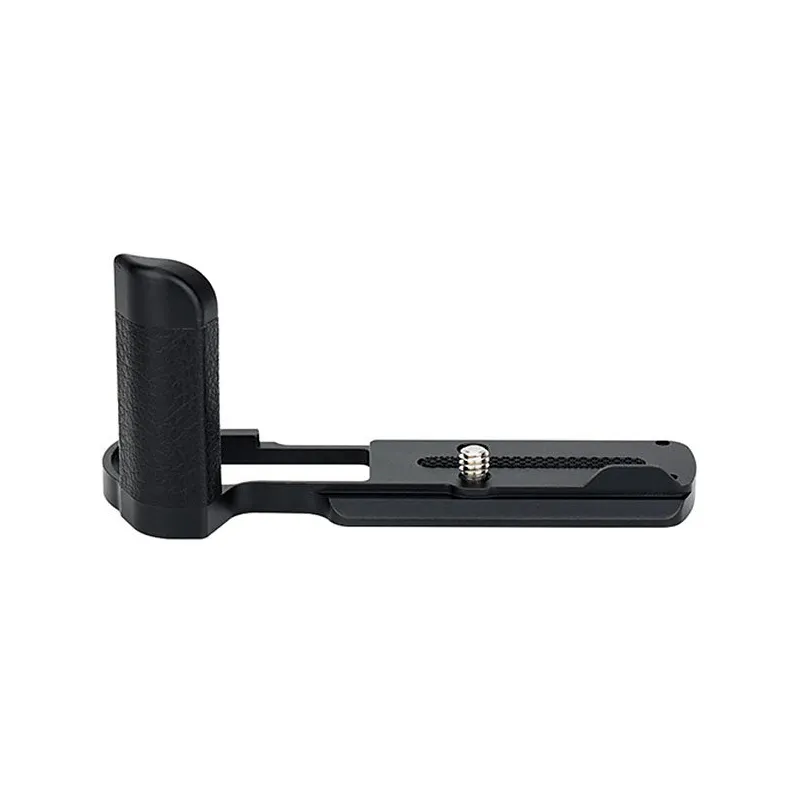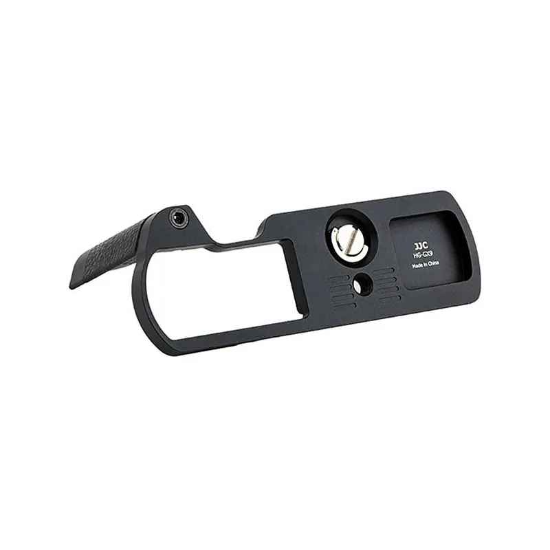 The JJC HG-GX9 Metal Hand Grip is designed for use with the Panasonic Lumix GX9, GX7 Mark II and Mark III, GX85 and GX80 system cameras. The handle is made of a sturdy, durable premium aluminum alloy. This makes the handle fit perfectly with the camera housing. The anti -slip handle is comfortable in the hand thanks to the microfiber leather on the surface.