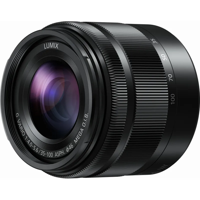 The sleek and compact LUMIX G VARIO 35-100mm f/4.0-5.6 ASPH. MEGA O.I.S. Lens from Panasonic is a medium telephoto zoom lens for Micro Four Thirds format cameras. Covering the popular 35mm equivalent 70-200mm focal length, the lens is suitable for a wide range of applications, including sporting events, portraiture, and close-ups. It incorporates Panasonic's Mega O.I.S. (Optical Image Stabilizer) which employs gyro sensors built into the lens to suppress the blur caused by a shaky hand, helping you capturing clear and sharp images.