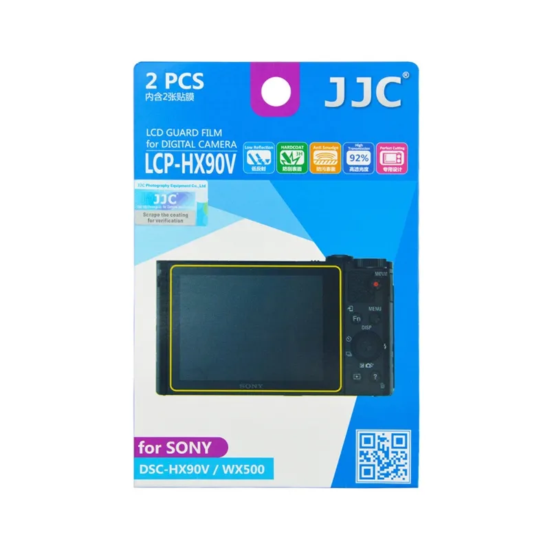 The JJC LCP-HX90V Screen Protector is specially tailored for the displays of the Sony Cybershot DSC-HX90V compact camera. The screen protector is easy to fit and take off again. The foil offers excellent protection against dust, scratches, fingerprints and dirt. All information remains clearly visible as the foil has high light transmission and minimal reflection.
