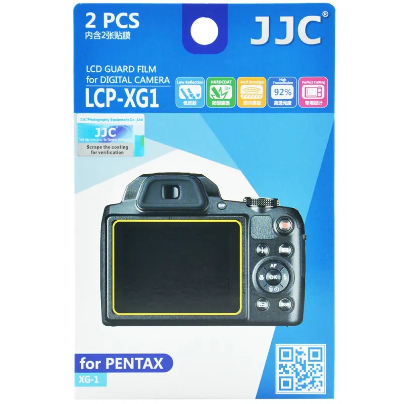 The JJC LCP-XG1 Screen Protector protects the display of your Pentax XG-1 compact camera from scratches, dust, fingerprints and other dirt. The screen protector is specially tailored for this camera's display. The foil is easy to place and remove. The material has high light transmission and reflects minimally. All information on the screen therefore remains clearly visible.