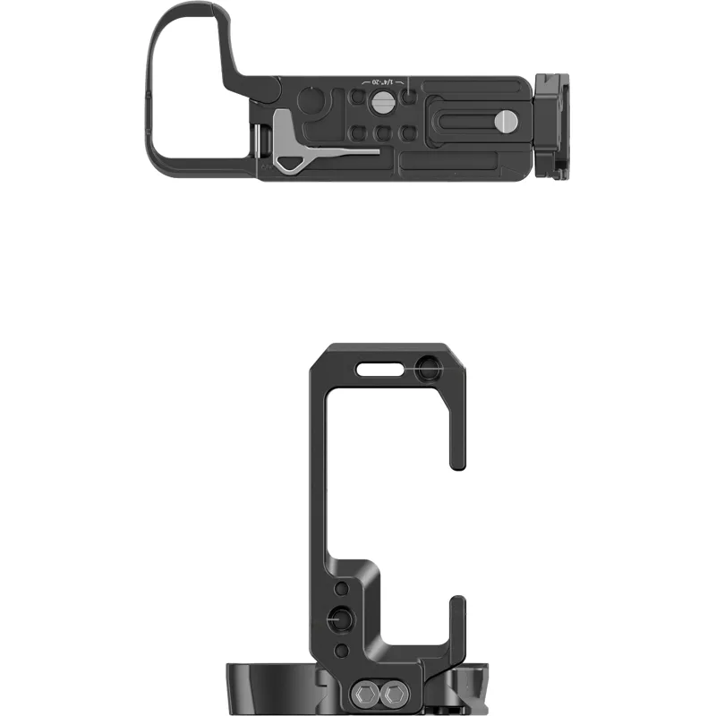The bottom features built-in 1/4"-20 and 3/8"-16 threaded holes, allowing seamless compatibility with side handles for handheld vertical shooting solutions, as well as tripods.
