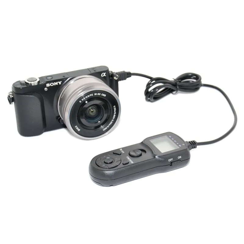 The JJC Timer RemoteShutter Cord TM-F2 (Sony) is a remote control with a 90cm cord suitable for use with various Sony cameras. The remote control has multiple functions including a self-timer, interval timer and a slow shutter timer. The timer can be set between 1 second and 99 hours, 59 minutes and 59 seconds. Ideal for controlling your camera before taking a self-portrait or when it's on a tripod and you don't want to cause shake by pressing the shutter button with your finger.