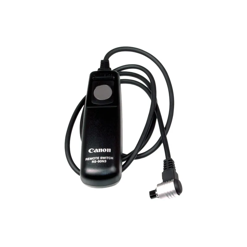 The compact Canon Remote Switch RS-80N3 with a 2.6'/80cm cable is a remote shutter release which is designed to prevent camera shake for super telephoto shots, macro photography and bulb exposures. Handy for taking pictures of subjects that are difficult to approach, or to minimize vibration for close-ups and time exposure.