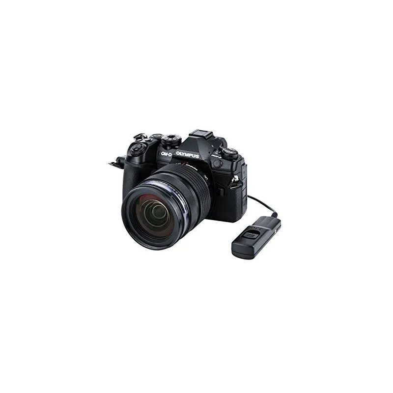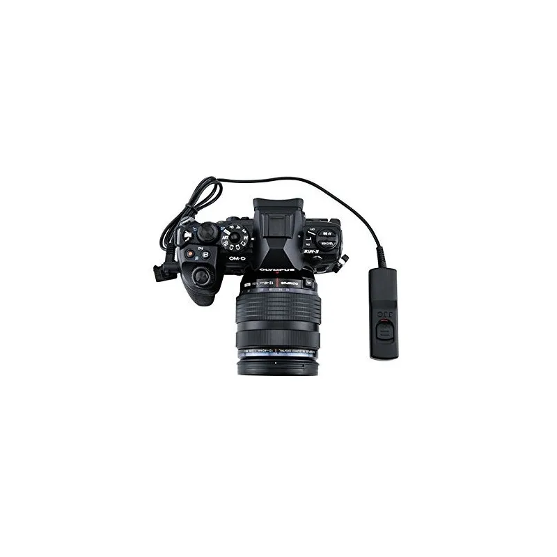 The JJC MA-J2 is a replacement wired remote control for the Olympus RM-CB2, suitable for the Olympus E-M1 Mark II system camera. The MA-J2 has a 2-phase shutter release button: keep the button halfway pressed to focus and all the way down to take a picture. You can also lock the button for continuous shooting. It is powered by the camera, so no batteries are needed.