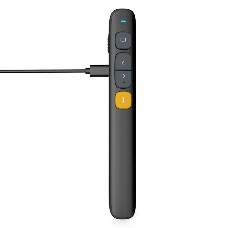 Norwii N29 AAA remote control with laser pointer for multimedia presentations is an ultra-mobile device with the dimensions of a pen. This model is powered by AAA batteries or rechargeable batteries. The communication range here is as much as 100 meters. The Norwii N29 AAA remote control allows easy operation of many popular programs such as PowerPoint, Keynote, Prezi, Word, Excel, Acrobat Reader DC and ACD See. 3 slide changing modes provide flexibility and ease of use. Personalizing the buttons with the Norwii Presenter app will further customize the controller to your preferences.
