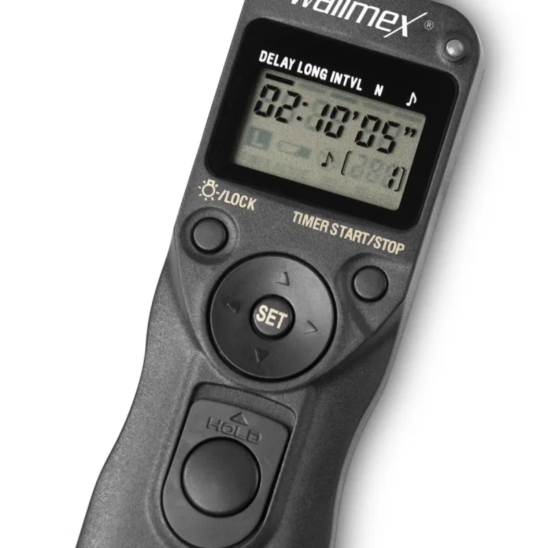 The walimex LCD Digital Timer Remote is a professional grade time device designed for precise control over scheduled shutter release, exposure length, frequency and many more functions. It provides delayed shutter release to the second, intermittent release, time exposure and continuous shooting to preset limits. The time can be preset from 1 second to 99 hours. Settings can be seen on the LCD screen, which can be illuminated.